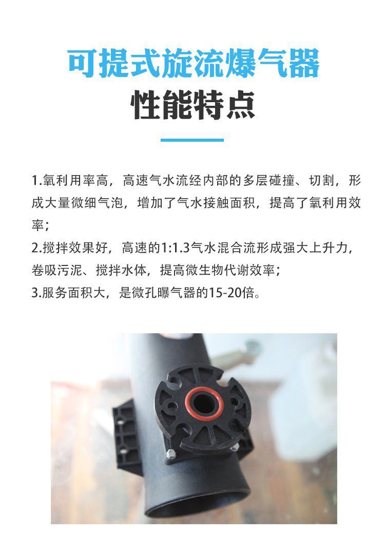 可升降旋流曝氣器整體由尼龍66+30%玻璃纖維制成,,具有較高的耐腐蝕性。其高度為42厘米,內(nèi)徑為12厘米,進(jìn)氣口中心距曝氣頭底部5厘米。