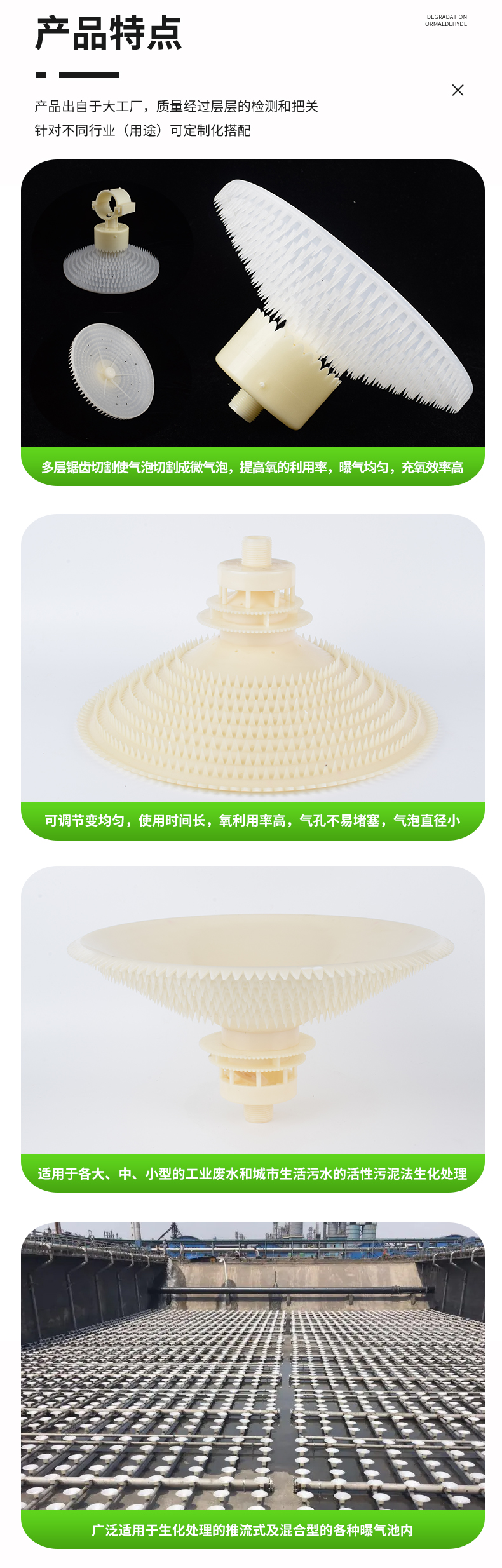 旋混式曝氣器采用多層螺旋切割的型式進(jìn)行充氧曝氣,旋混式曝氣器當(dāng)氣流進(jìn)入260型混流型曝氣器時(shí),氣流首先通過(guò)二道螺旋切割系統(tǒng),切割后進(jìn)入下層的的多層鋸齒型布?xì)忸^,進(jìn)行多層切割,使氣泡切割成微氣泡,這樣大大提高了氧的利用率,具有布?xì)饩鶆,充氧效率高的特點(diǎn)。