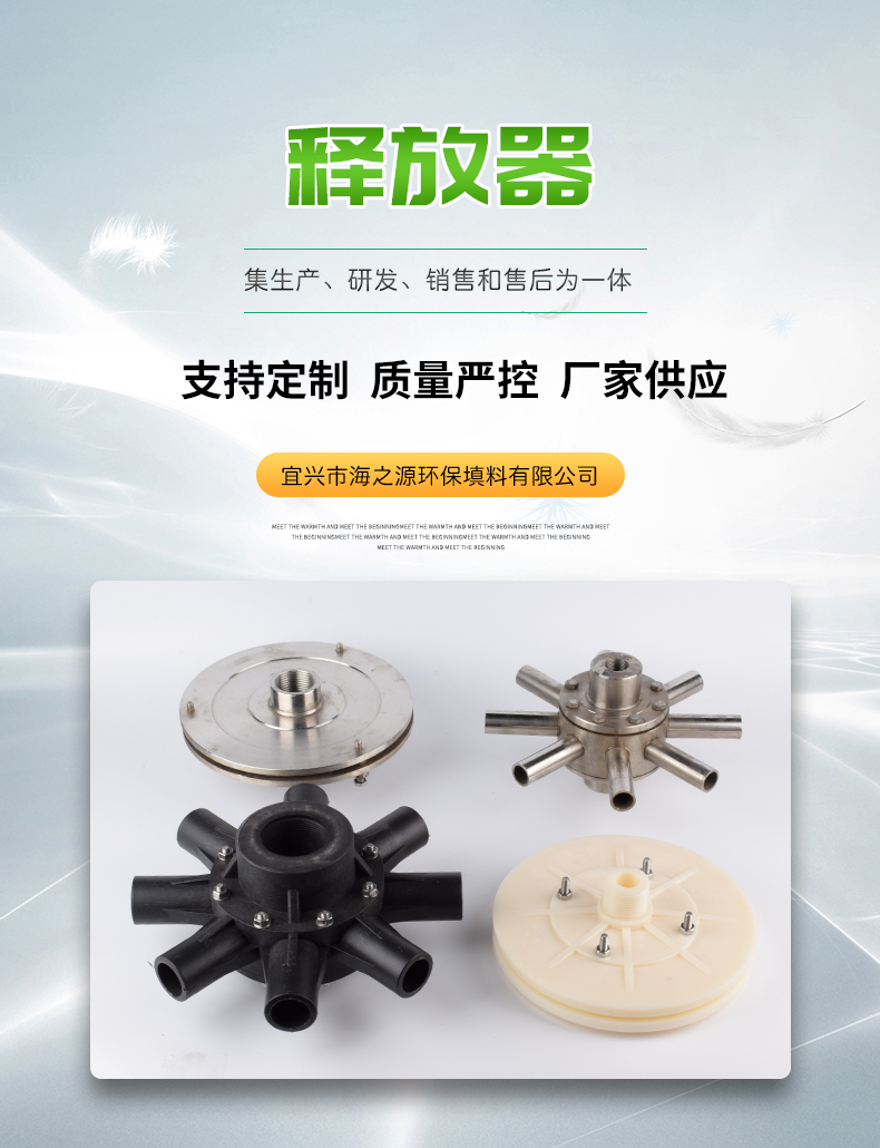 釋放器是溶氣氣浮凈水系統(tǒng)中關(guān)鍵裝置。壓力溶氣水只有通過該裝置降壓消能后,才能釋放出大量的微細(xì)氣泡,釋放器性能的好壞,涉及到氣泡的微細(xì)度,它直接影響氣浮法凈水的效果。本釋放器可反沖洗,不易堵塞。